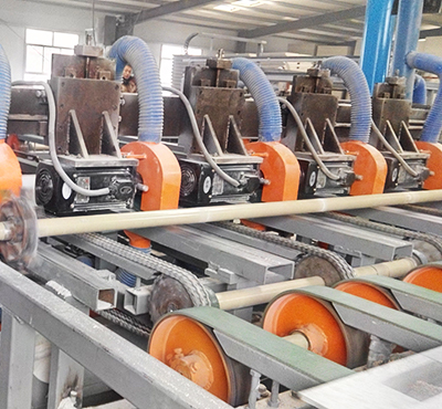 5.刮膩子背膠系統:此系統由膩子配料機,刮膩子背膠機及一號烘干機組成。板材經過該系統,表面更加光滑均勻,背面得到膠水保護。