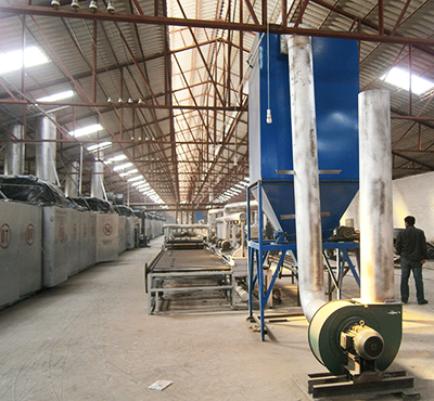 2.成型系統:該系統由供料罐、續棉箱、定型機、真空抽濾機、濾網、水切機及加速機組成。經過此系統生產出符合客戶要求長度、寬度、厚度、重量的坯板,未達標的產品循環利用,減少損失。